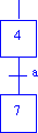 La figura siguiente representa una etapa pozo. Esta etapa, una vez activada no se puede desactivar. La primera vez que la etapa 4 esté activa y a sea cierta, se desactivará la etapa 4 y se activará la 7 (como es lógico). Las siguientes veces en que la etapa 4 esté activa y a sea cierta, se desactivará la etapa 4 y la etapa 7 seguirá activada. Equivale a una etapa en la que la transición posterior a ella es siempre falsa. Es posible que una etapa sea fuente y pozo al mismo tiempo.