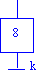 La figura siguiente representa una etapa fuente. La etapa 7 se activará al inicializar el sistema y se desactivará cuando la receptividad m sea cierta. No podrá volverse a activar hasta que haya una nueva inicialización del GRAFCET. Equivale a una etapa en la que la transición anterior a ella es siempre falsa.
