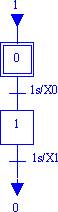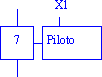 Una aplicación muy corriente de los GRAFCETs auxiliares es el intermitente. En el ejemplo siguiente se desea que un piloto esté intermitente mientras la etapa 7 esté activada; el intermitente (con un periodo de dos segundos) se ha representado a la derecha.