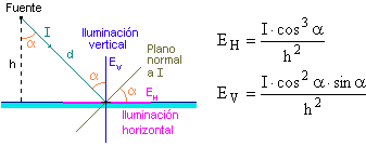 En general, si un punto está iluminado por más de una lámpara su iluminancia total es la suma de las iluminancias recibidas: