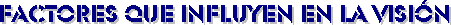 Los factores externos que influyen sobre la formación de una buena imagen en la retina pueden dividirse en dos clases: los subjetivos y los objetivos. Los primeros dependen del propio individuo como su salud visual (depende de la edady del deterioro de la vista), el nivel de atención en lo que mira, si está en reposo o en movimiento o la comodidad visual (nivel de iluminación y deslumbramiento). Mientras que los segundos dependen de lo que estemos mirando, del objeto visual. Son los factores objetivos y son el tamaño, la agudeza visual, el contraste y el tiempo.